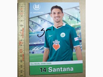 Signerad VfL Wolfsburg Fotbollskort - Santana