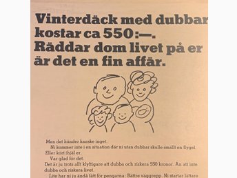 Retro-annons ”Vinterdäck med dubbar - Secomet från Fagersta” från 1967