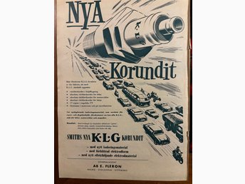 Annons för K.L.G. Korundit tändstift 1956