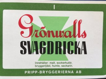 Öletikett Grönwalls Svagdricka Pripp-Bryggerierna Klass I