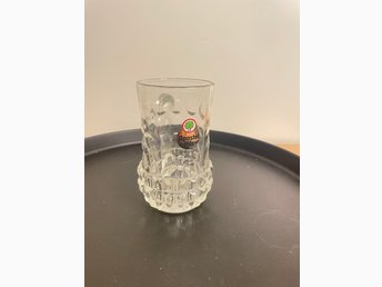 Askfat. Glas . Diameter 15 cm . POMMAC . Reklam. Läskedrycker
