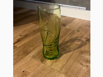 Glasvas gjord av Coca Cola med röd/orange kant av glaskonstnären Leif Hauges