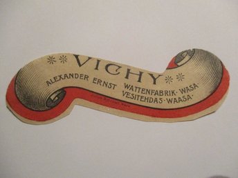 OLD SODA LABEL - VICHY LEXANDER ERNST WATTENFABRIK WASA FINLAND (K13-P28)
