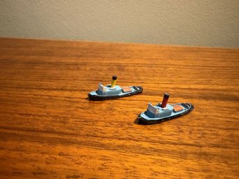 2 metallmodeller av bogserbåt Tug M73, 3,6 cm vardera, Tri-ang UK