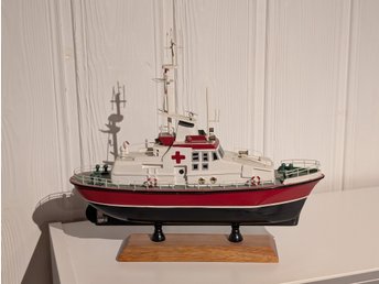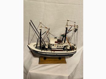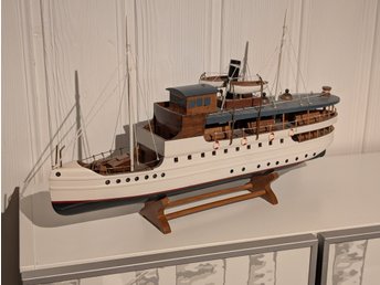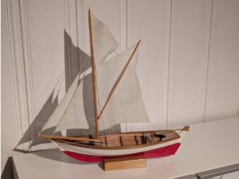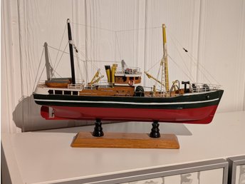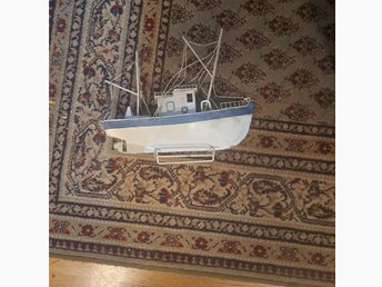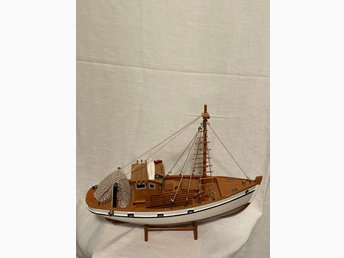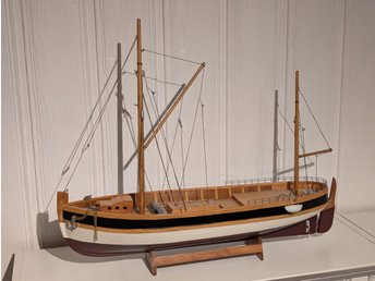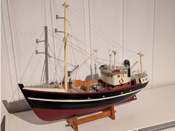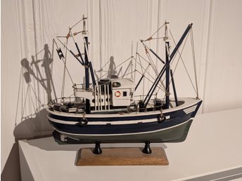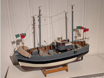 Modellfiskebåt trålare fiskebåt i trä på stativ