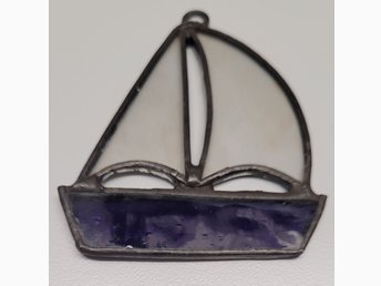 Tiffany/kopparfolie-teknik lila segelbåt hantverk +- H6 B6 cm
