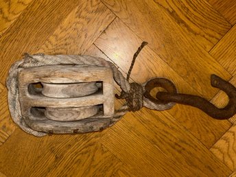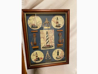 Marin tavla med fyrar, block och knopar samt skyddsglas framför