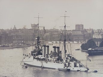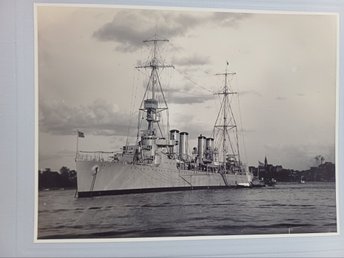 FARTYG FOTO amerikanska kryssaren "Raleigh" med Vanadis i bakgrunden i Sthlm