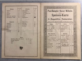 Meny från post ångfartyget Kaiser Wilhelm 1880-tal