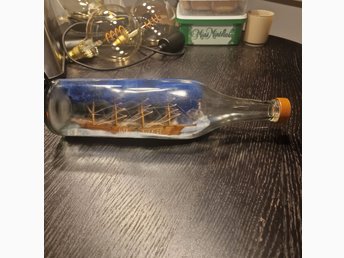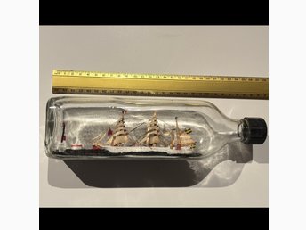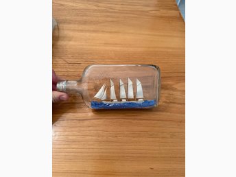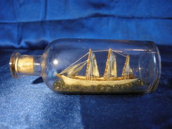 Fint litet flaskskepp - Signerat R.E Johnson 1955