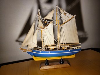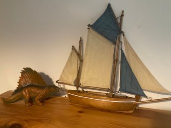 Dekorativ Segelbåt i Trä, dinosauriern följa med