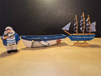 Dekorativa Båtar och Sjömans kapten med pipa