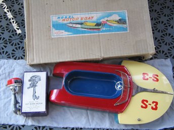 Vintage Modell Motorbåt med Motor Sakai Seisakusho 50-tal