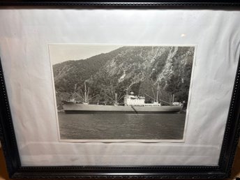 Stort maritimt foto – lastfartyg i fjordlandskap – inramad tavla