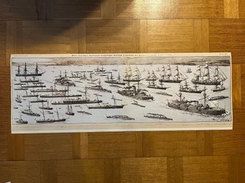 Plansch av Danska flottan utanför Köpenhamn 94 x 34 cm lång.
