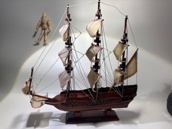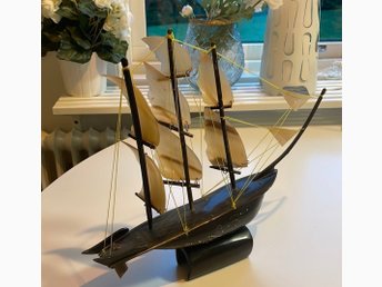Dekorativ modellbåt i trä med segel