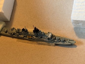 Detaljerad metallmodell av HMS Volage från Tri-ang