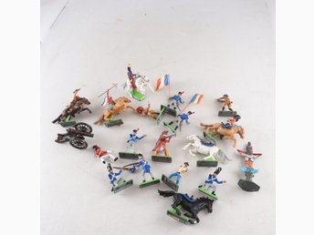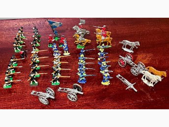 Ett Set Av Tennsoldater + Kanoner & Hästar Ca. 57 st. Delar Enligt bild