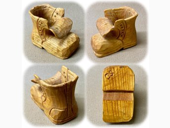 Välgjord handsnidad och detaljrik sko / känga i trä. Signerad. Mycket fint skick