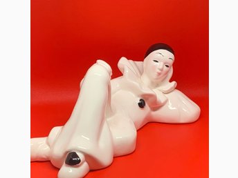 Vintage Vit Pierrot CLOWN Porslinsfigur inredning samlare läcker design