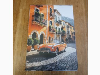 Tavla med motiv av orange bil 30x40 cm