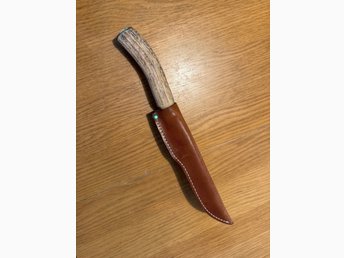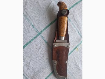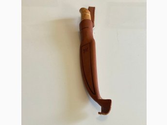 BRUSLETTO GEILO grym jakt/fiske kniv o trä/läderslida! One of a kind!