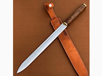 Long Blade D2 Steel Bowie Dagger Knife with Leather Sheath-Handmade|SBD020