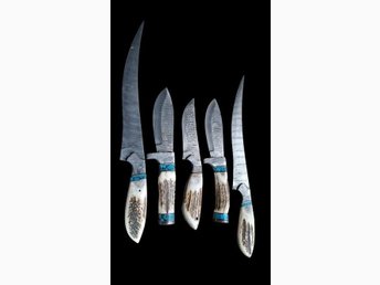 5-Piece Custom Forged Damascus Fillet & Skinner Knives-Stag Horn Handles|FSH561