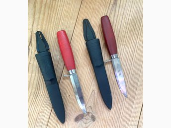 Moraknivar 2 st oanvända. 1 st Frosts Mora Sweden och 1 st K.J. Eriksson Mora