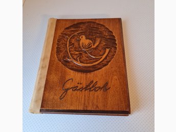 Gästbok från 1954 med utsnidat trä omslag
