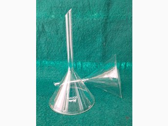 Två vetenskapliga trattar i glas.