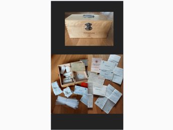Sonne förbandslåda i trä – komplett med innehåll – medicinhistoria / apotek