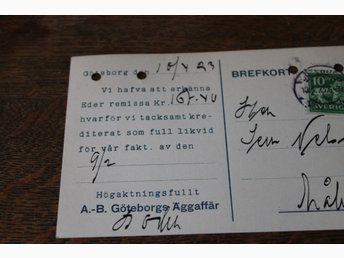 Brevkort till lanthandlare i Småland AB Göteborgs Äggaffär 10 april 1923
