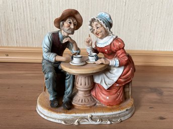 Speldosa, äldre par vid bord