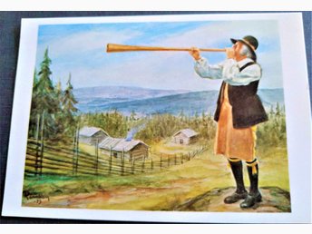 Vykort på Näverblåsare Filip Sundberg, Orsa. Grundare av Gömstället på Heden