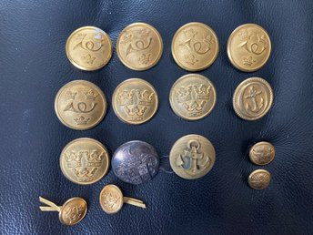 Vintage Knappar - Samling med Krona, Posthorn och Ankare