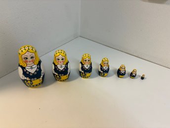 Ryska matrjosjka dockor 7 st, “russian nesting dolls, handmålade, största13,5 cm