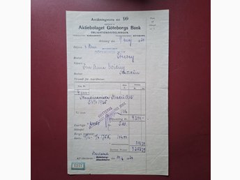 Aktiebolaget Göteborgs Bank Avräkningsnota Kvitto 1930