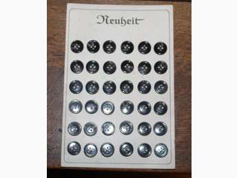 Obruten karta med knappar från lanthandels lager tidigt 1900-tal Neuheit knappar