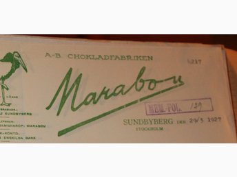 Faktura från Marabou daterad 29 mars 1927 från lanthandels lager