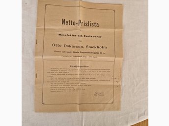 Netto-Prislista Manufaktur och Korta varor 1909
