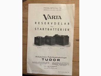 Tudor Varta prislista nr 76 år 1934 – startbatterier reservdelar