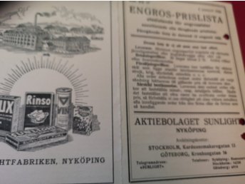 Aktiebolaget Sunlight Nyköping Engros-Prislista 2 januari 1926 priskurant