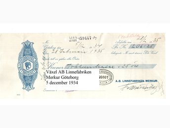 Linnefabriken Merkur Göteborg Växel till handlare i Målilla 5 december 1934