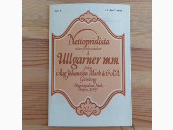 Priskurant Ullgarner m.m. från Aug Johansson Mark & C. A.B. Göteborg, 1931