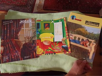 Tre tunna inredningskataloger: Jotex Hösten/vintern 1990, Mio 1990/91, Skåre
