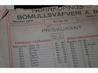 Fyra Priskuranter Norrköpings Bomullsväfveri AB 1926 o 1927 TUPPEN lanthandel