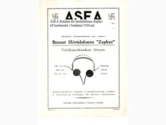 ASEA Reklamblad till lanthandel 1920-tal Brunet Hörtelefonen Zephyr vintage