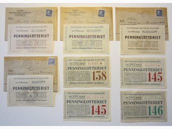 8 st penninglotter, varav 4 är från första året 1939