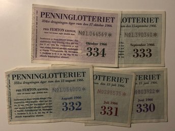 5 X Penninglotteriet 1966 Lotter